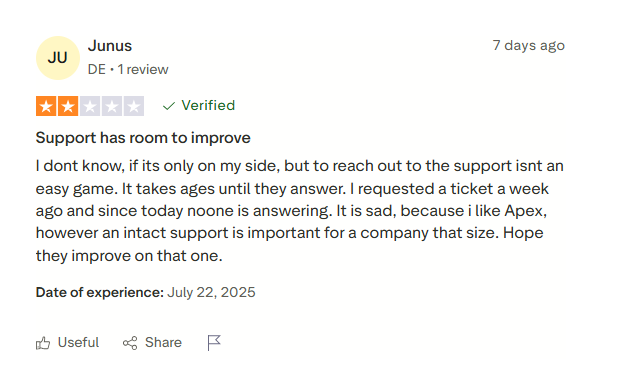 However, not all feedback is glowing—another user mentioned slow response times from Apex’s support team, noting that a week-old ticket had gone unanswered.
