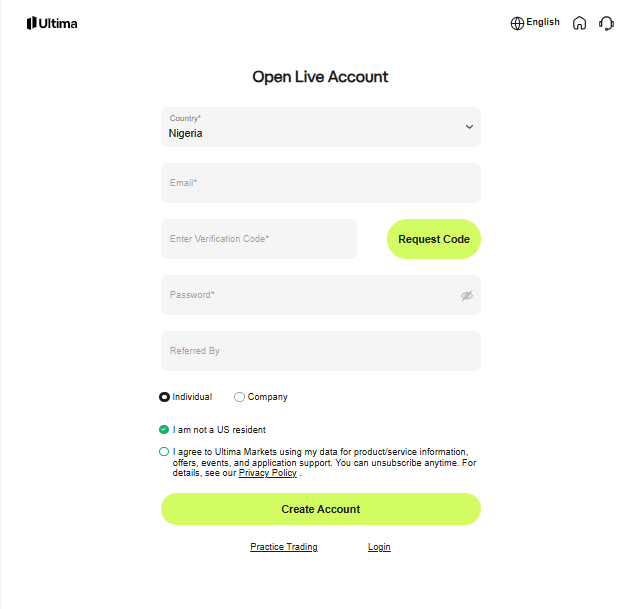 - Visit the Official Website: Make sure you’re on ultimamarkets.com (watch out for fake copycat sites)