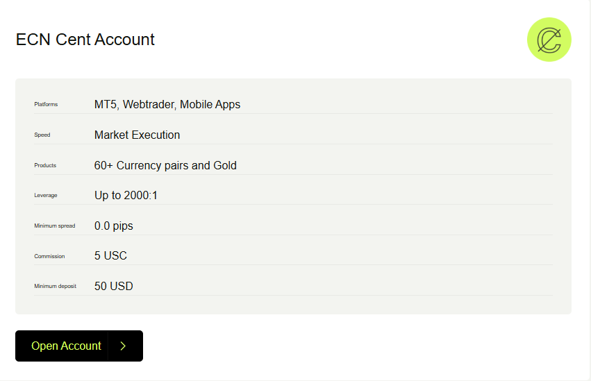 3. Cent Accounts – Micro-lot trading with minimal risk exposure, available in Standard and ECN variants
